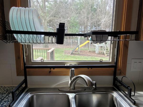 Selling an adjustable metal utensil rack, used like new. The rack can hold over 24 plates, 12 bowls, 12 cups, multiple spoons, forks, knives. Comes with S hooks for hanging serving spoons or cooking tools.